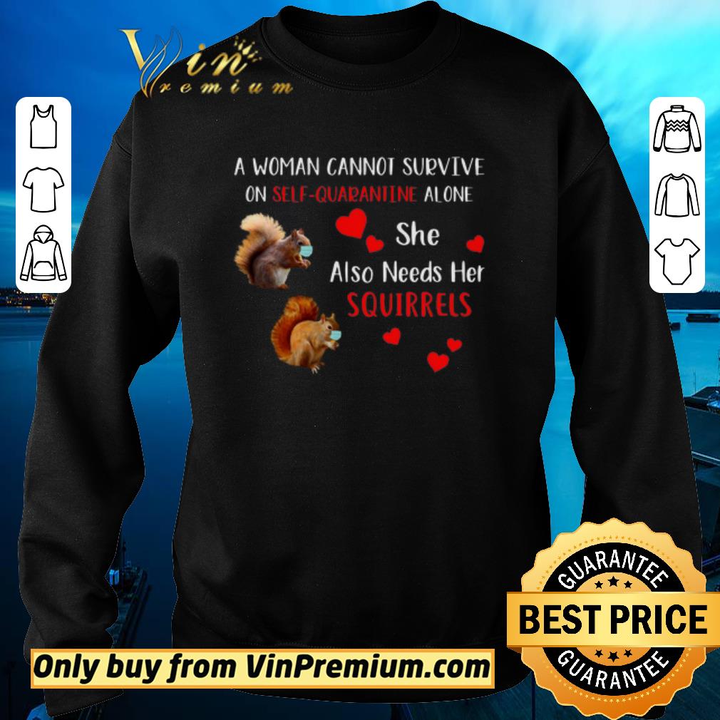 Awesome A woman cannot survive on self-quarantine alone she also needs her Squirrels shirt, Hoodie, Sweater, Longsleeve T-Shirt For Men and Women