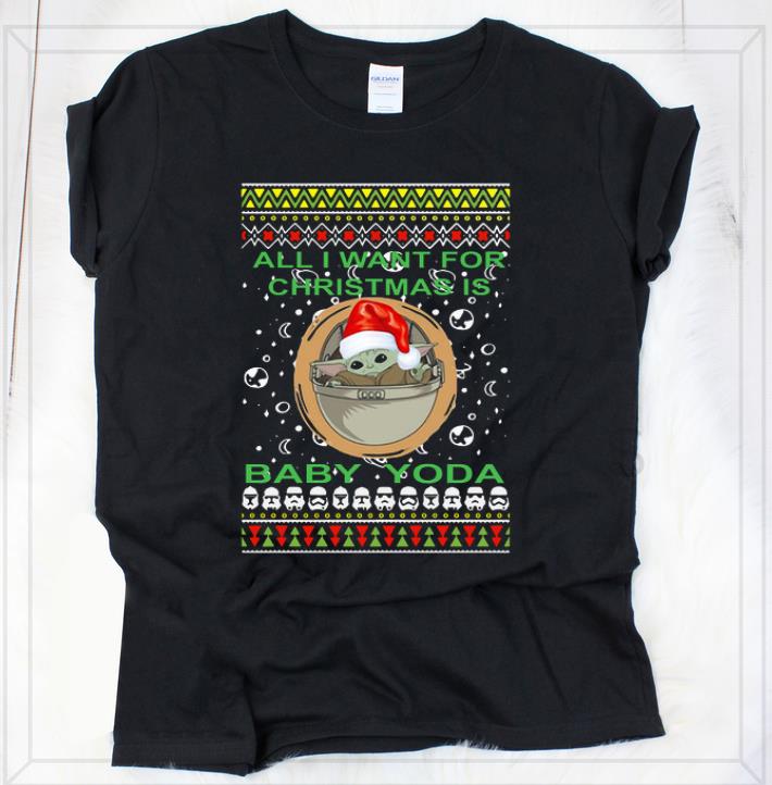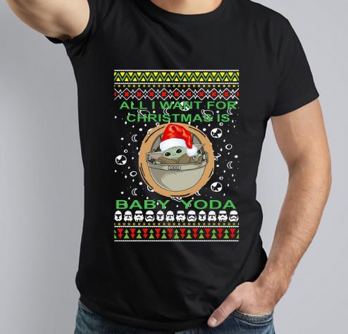 Awesome All I Want For Christmas Is Baby Yoda Ugly Christmas shirt, Hoodie, Sweater, Longsleeve T-Shirt For Men and Women