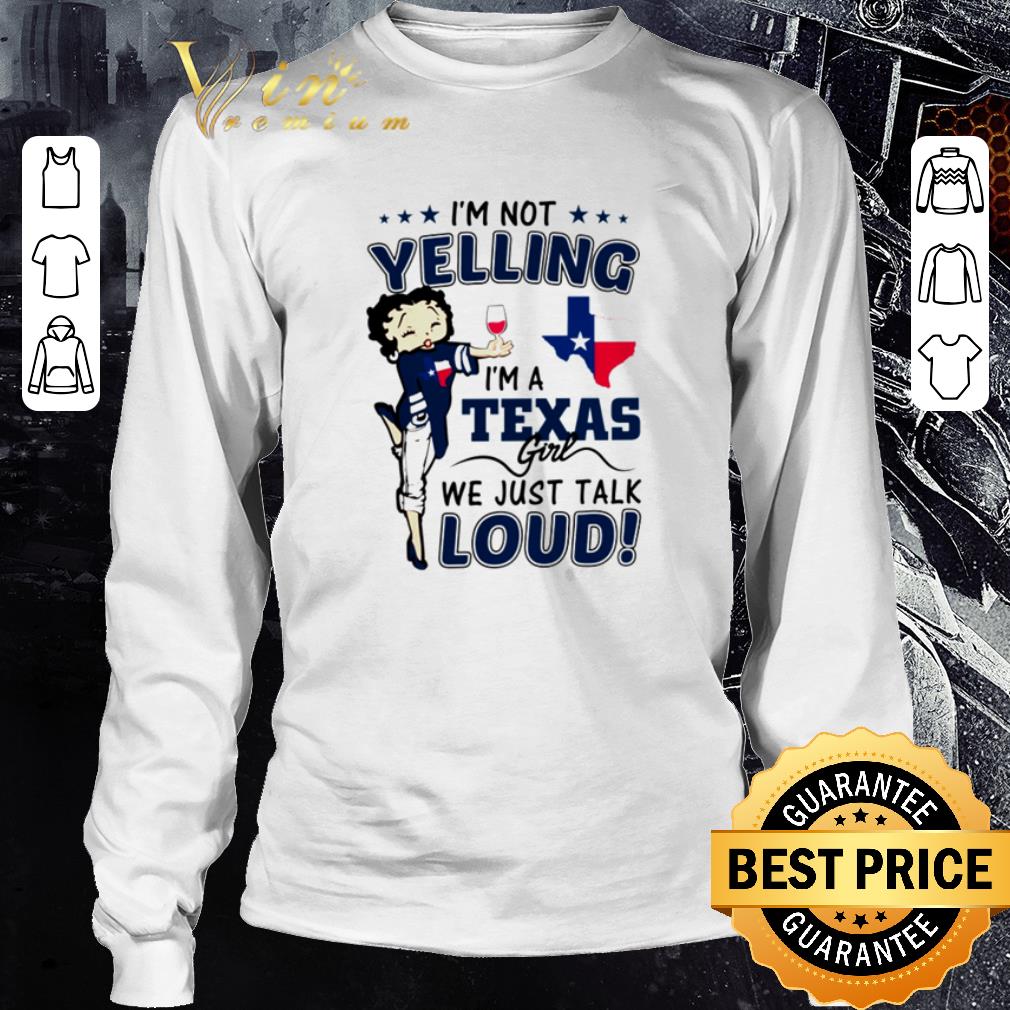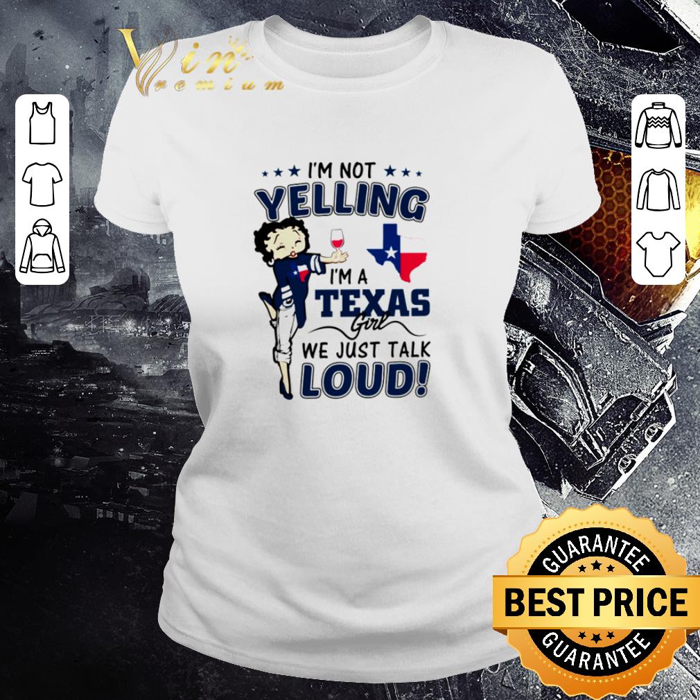 Awesome Betty Boop I’m not yelling I’m a Texas girl we just talk loud shirt, Hoodie, Sweater, Longsleeve T-Shirt For Men and Women
