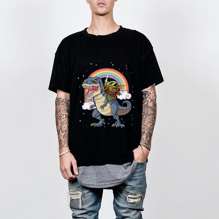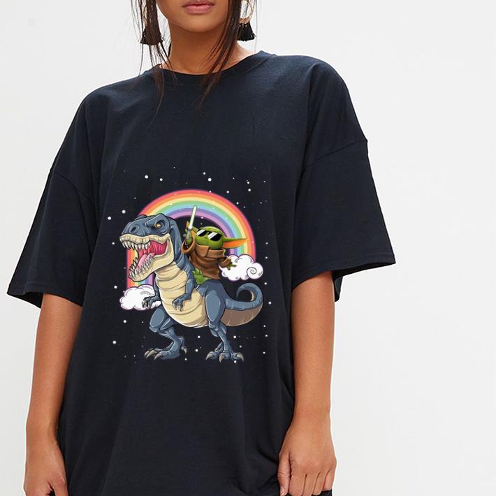 Great Star Wars Baby Yoda Riding Dinosaur T-rex Rainbow shirt, Hoodie, Sweater, Longsleeve T-Shirt For Men and Women