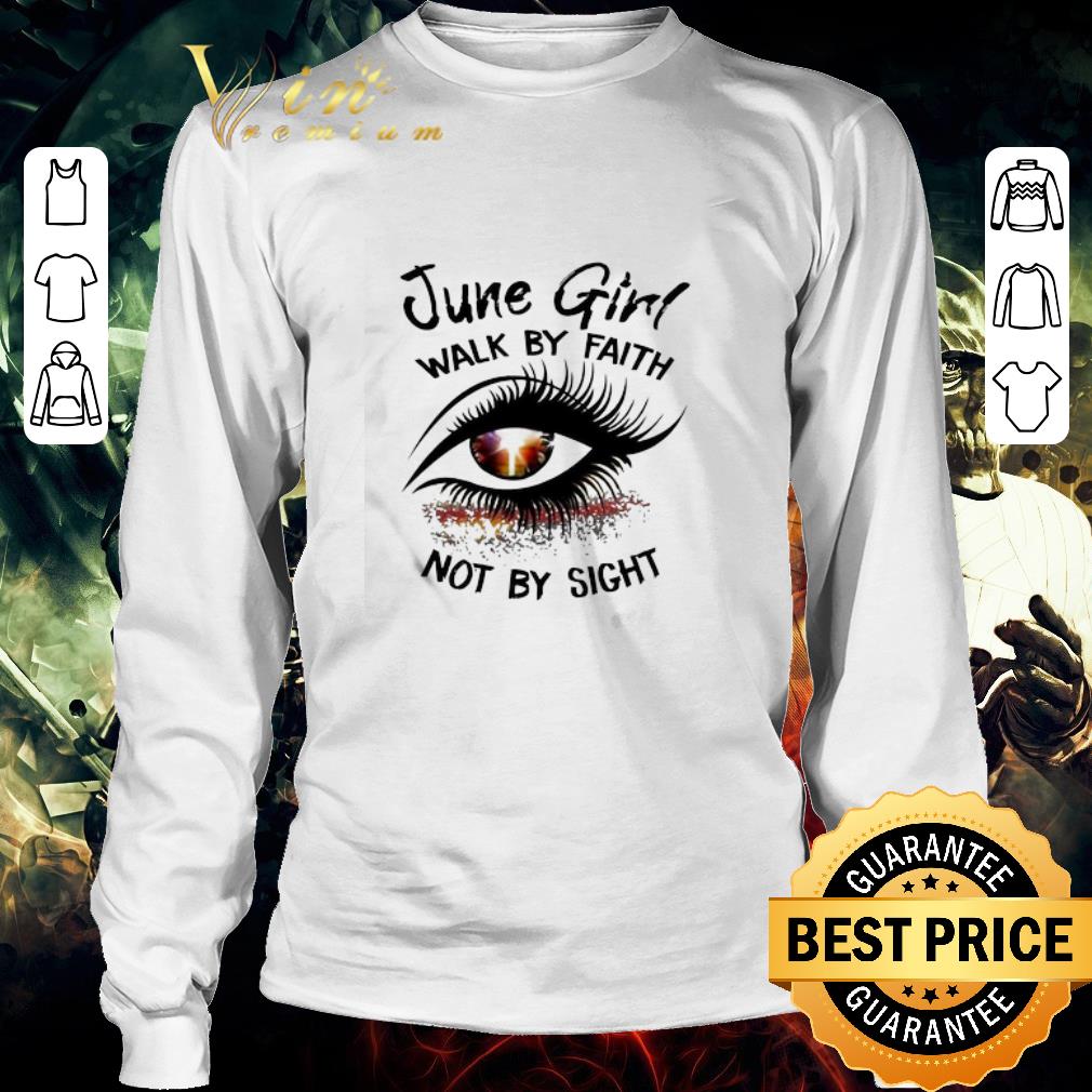 Hot Glitter Eye June girl walk by faith not by sight shirt, Hoodie, Sweater, Longsleeve T-Shirt For Men and Women