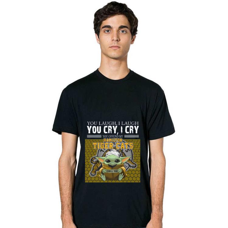 Nice Baby Yoda you laugh I laugh you cry I cry you offend my Hamilton Tigers Cats I kill you shirt, Hoodie, Sweater, Longsleeve T-Shirt For Men and Women
