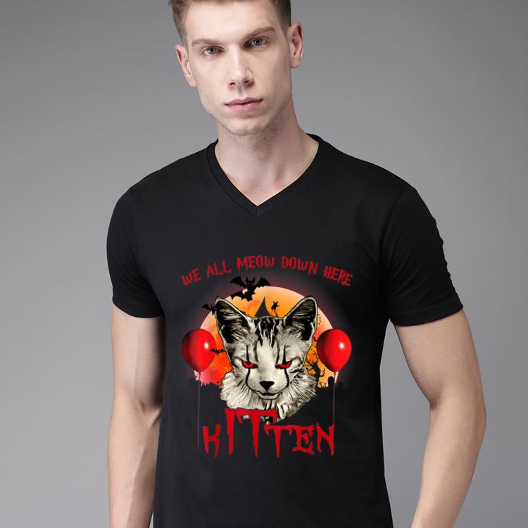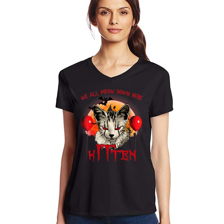 Original We All Meow Down Here Halloween IT Clown Cat shirt, Hoodie, Sweater, Longsleeve T-Shirt For Men and Women