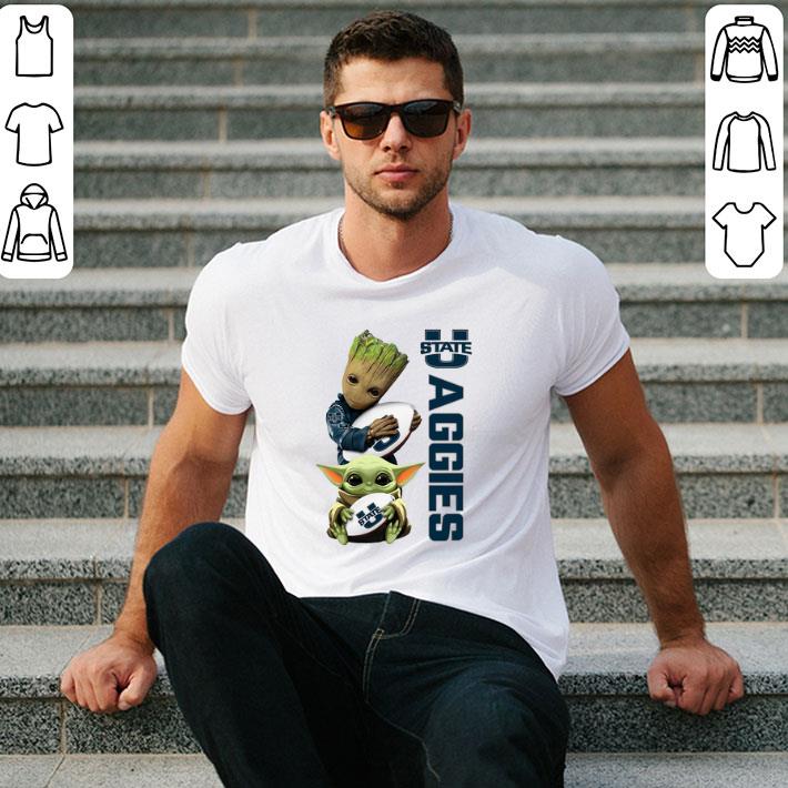 Top Baby Groot Baby Yoda Hug Utah State Aggies Star Wars shirt, Hoodie, Sweater, Longsleeve T-Shirt For Men and Women