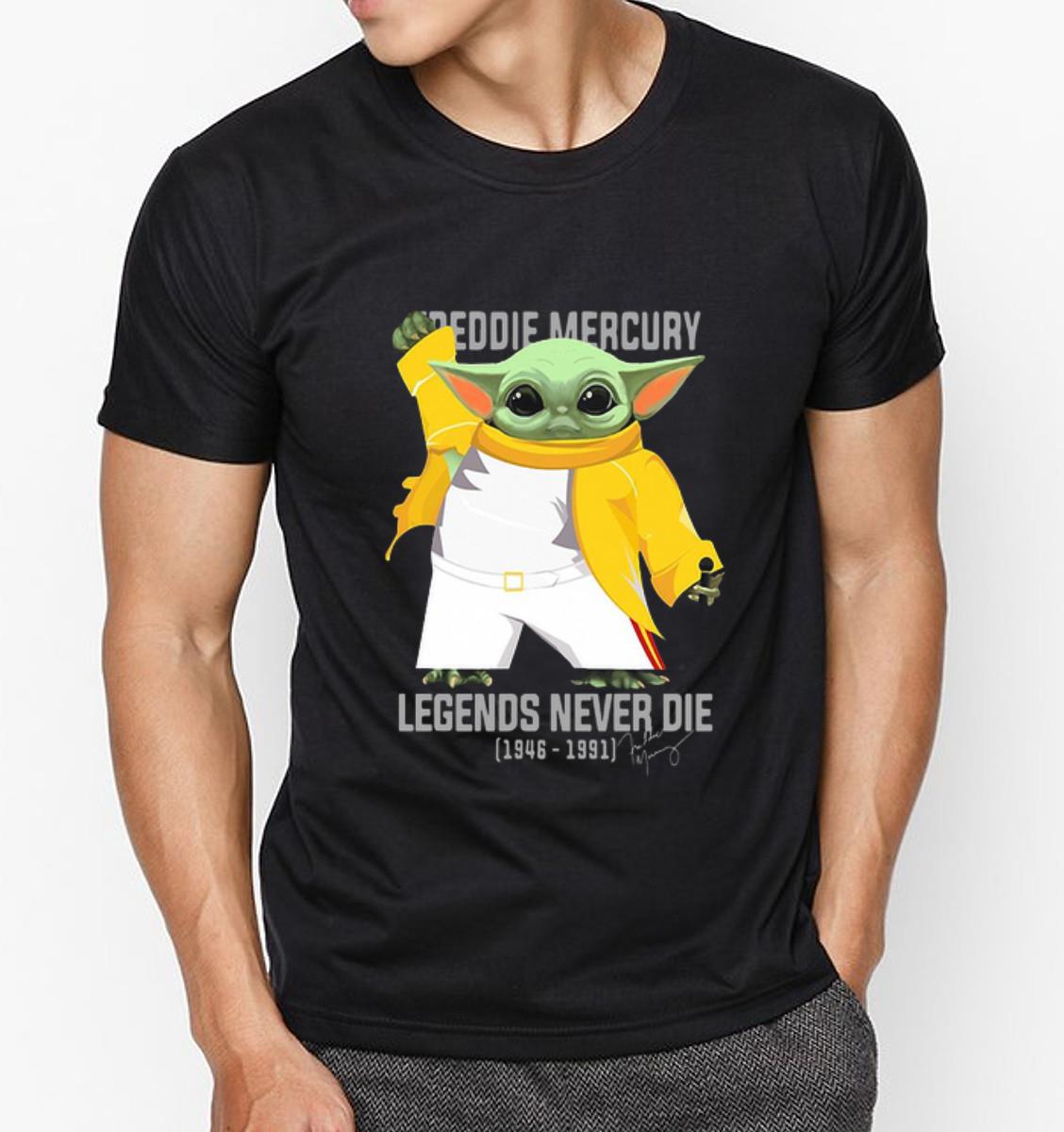 Top Baby Yoda Freddie Mercury Legends Never Die 1946-1991 Signature shirt, Hoodie, Sweater, Longsleeve T-Shirt For Men and Women