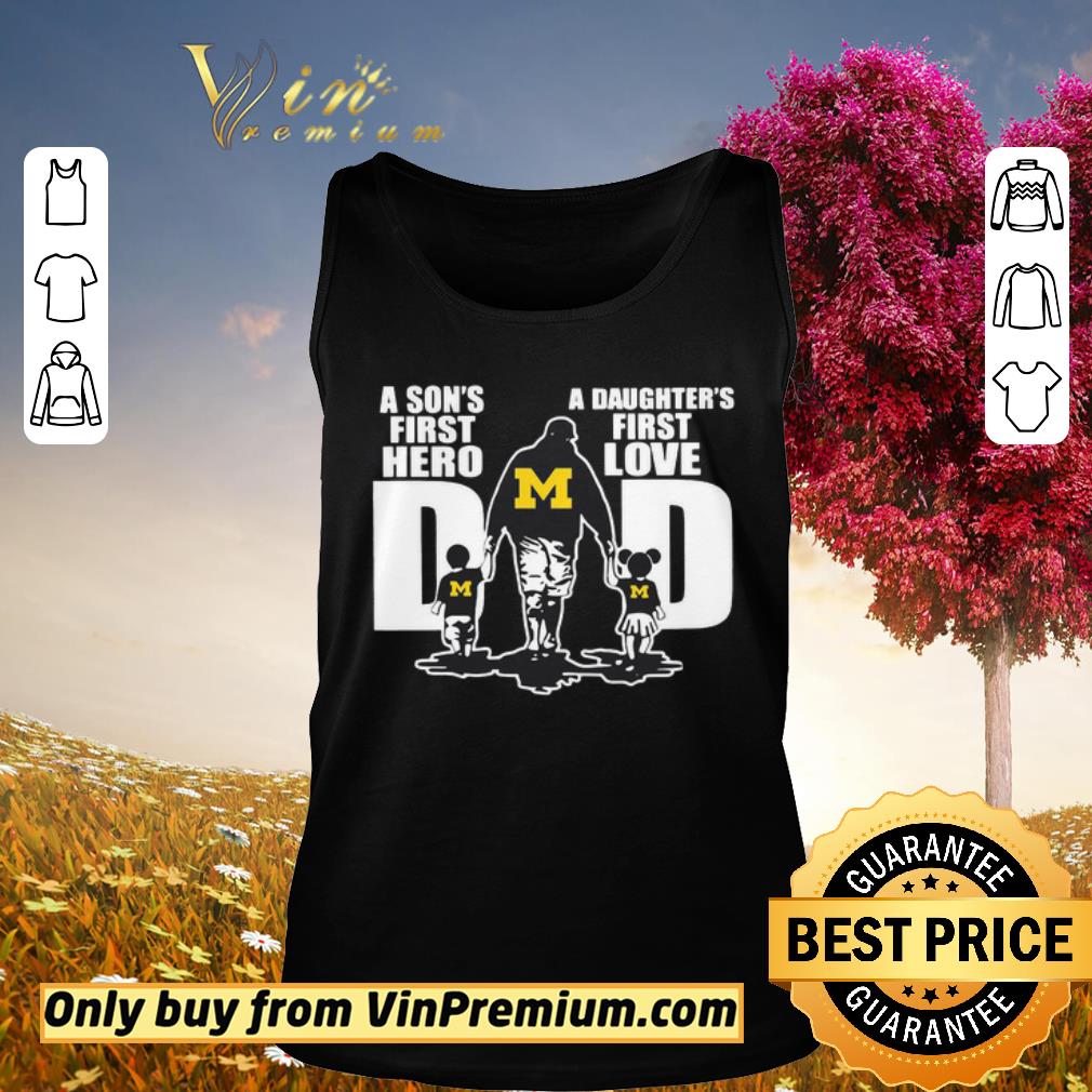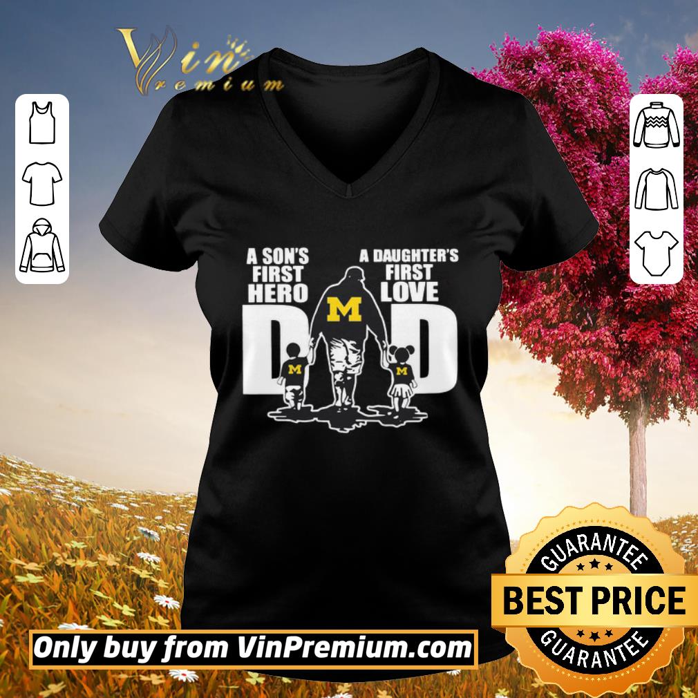 Top Michigan Wolverines Dad a son’s first hero a daughter’s first love shirt, Hoodie, Sweater, Longsleeve T-Shirt For Men and Women
